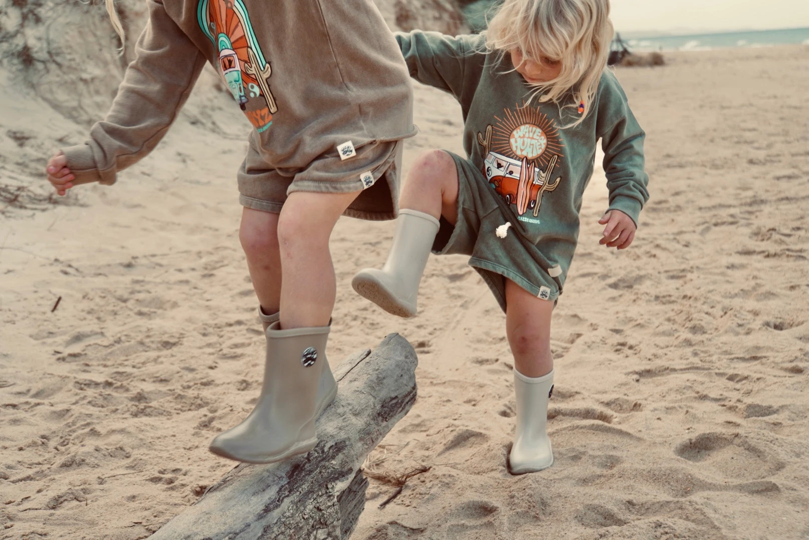 The ultimate gumboots to encourage those tiny legs on big adventures! If your groms are like mine, then there is nothing cooler then stomping puddles or adventuring in big gnarly boots! Designed in two neutral tones, waterproof of course, with our very own branded logo for added style. These are a lightweight comfortable boot, and start from approx 12 months of age.